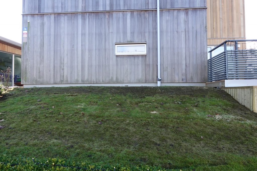 Så här såg det ut när vi var klara med utbyggnaden. En slänt som var svår att använda till någonting. Jobbigt att klippa gräs i nedförsbacke och supertråkigt!