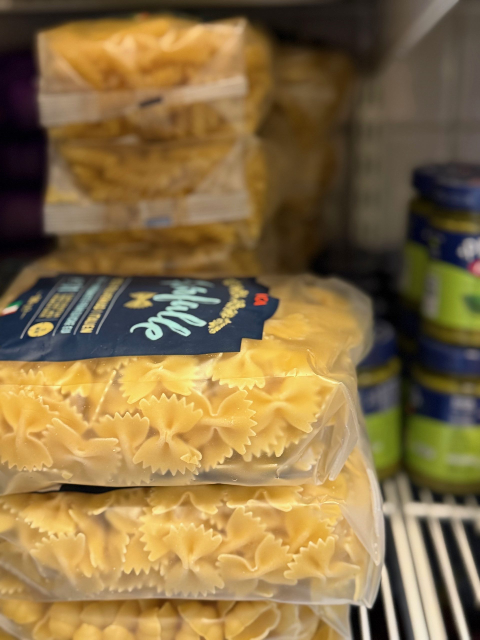 I dessa tider är det dessutom väldigt praktiskt att ha ett skafferi när priserna går upp och kunna handla när det är billigt. Jag ställer allt i ”first in first out” ordning i mitt skafferi. Jag köper det jag vet att jag använder mycket av i min matlagning och bakning och det som har lång hållbarhet. Inte svårare än så. Allting som har med bakning att göra har jag också hemma, alltifrån marsipanlock till tårtor, choklad och mandelmassa, men även mjöl och socker.