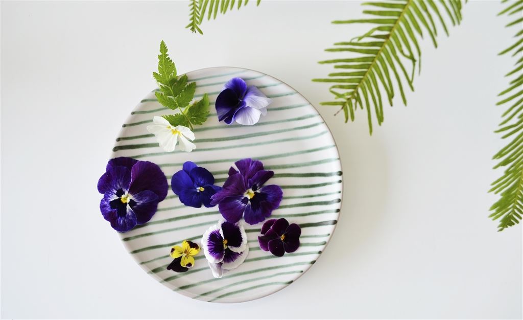 Två kvistar med Rosmarin. Addera några blommor som dekoration.
