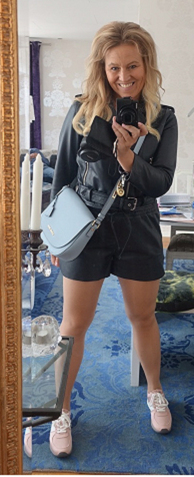 Vad som är mer positivt är att jag nu äntligen börjar få på mig mina egna kläder i min garderob! Så glad!! Har provat massor just därför! Bland annat min helt underbara skinnjacka med shorts i skinn från ett av mina favoritmärken Ganni!