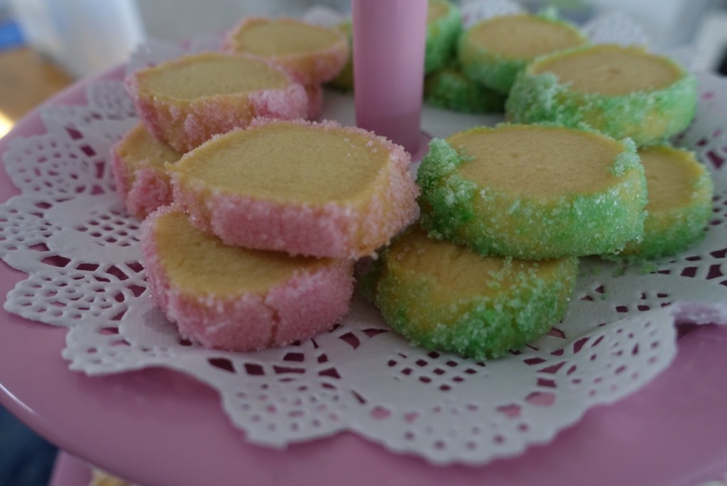 Lite vackra kakor rullade i färgat strösocker! Alltid fint på dukning och försvinnande goda!