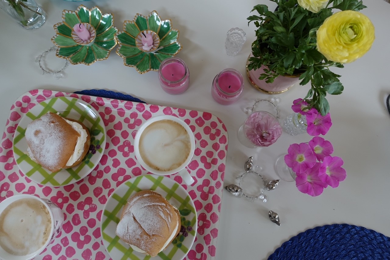 Hundarna börjar redan förbereda sig så fort jag tar fram en bricka för att duka upp fika! Dom tycker det är mysigt när vi fikar tillsammans.