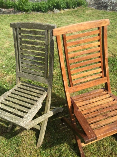 Jag gav dom helt enkelt en chans till, de såg bedrövliga ut för de har stått ute hela året så jag tog högtryckstvätten på alla möbler och vips så blev de som nya. Ja, jag inser att det inte är särskilt bra att köra högtryck på trämöbler, men om jag hade valet att köra dom till tippen eller en omgång med högtrycken så är det ok! Fyra stolar och ett bord fick sig en rejäl omgång! Väldigt glad att jag gav dem en chans!