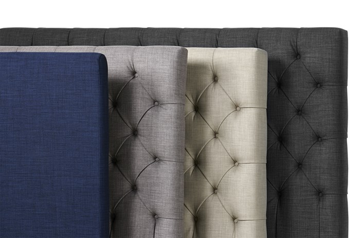 Till denna tapet har jag valt en sänggavel i ljusgrått tyg. Den kommer se fin ut emot det silvriga i tapeten.