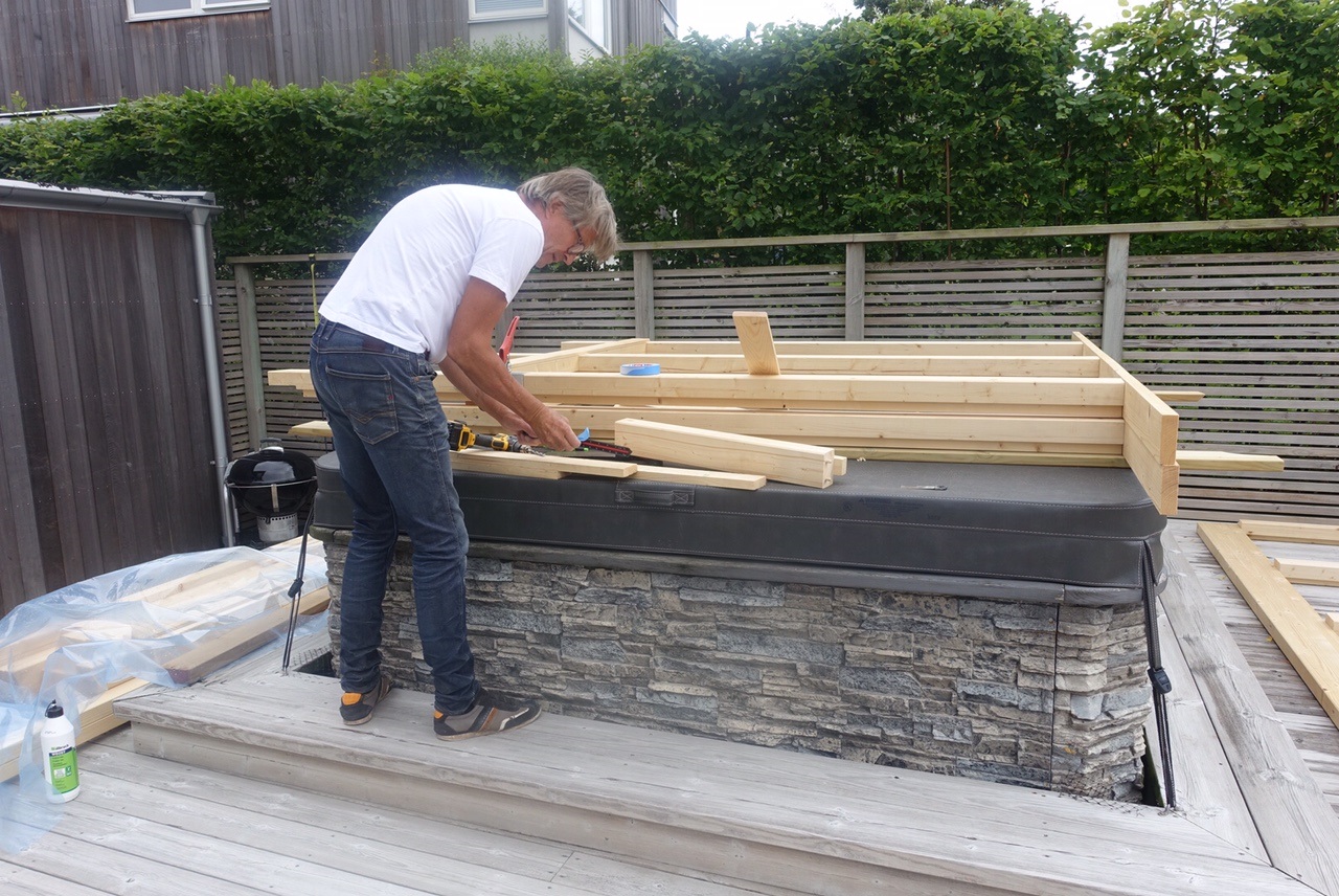 Här i Göteborgsområdet har det regnat ganska mycket dom sista dagarna. Det har dock inte satt stopp för fortsatt byggnation. Annat arbete har pågått på insidan och sedan har alla sidorna på husets satts i hop mellan regnskurarna. Där emellan har allting täckts över, för att sedan gå ut igen när solen tittat fram! 🙂