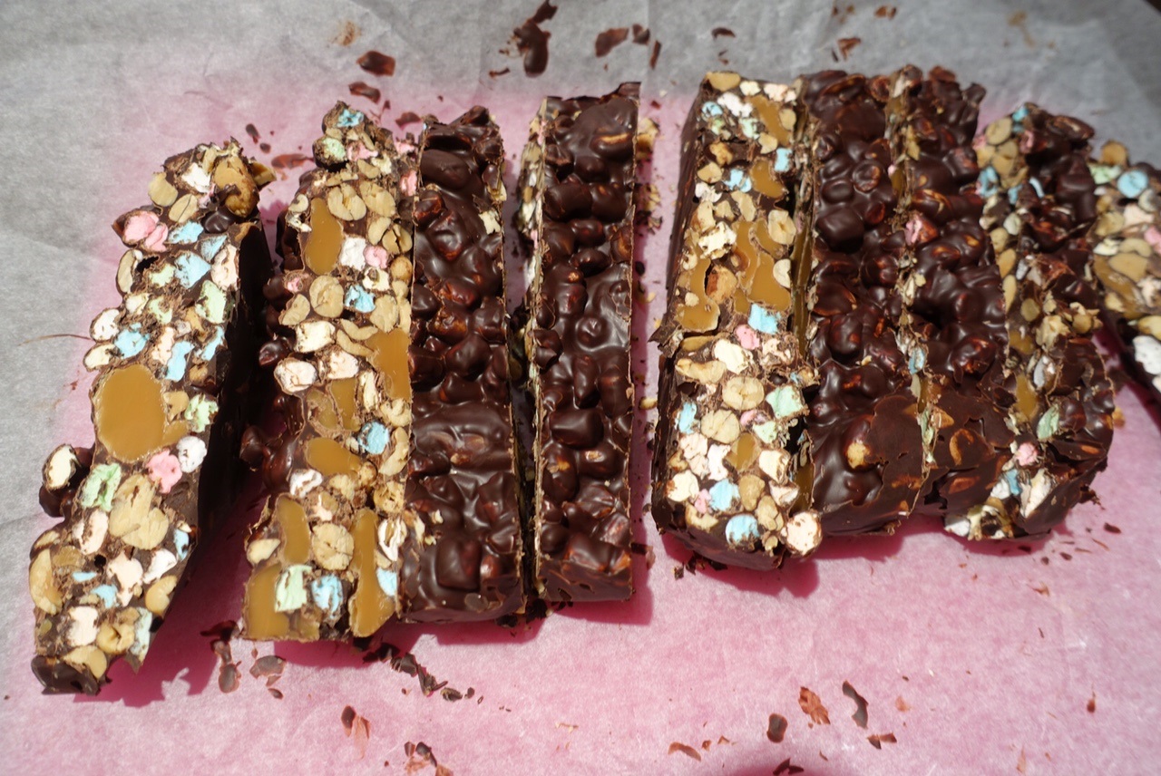 Som ni förstår var vi uppe tidigt i morse och nu har jag skurit även den Rocky Road jag gjorde i går. Blir så himla fint med färgade små marshmallows.