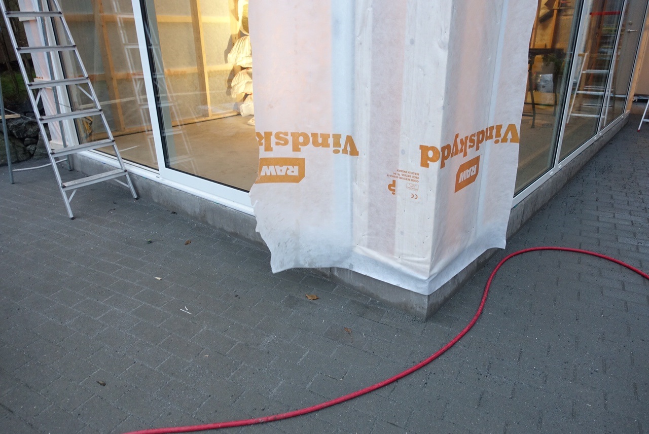 I dag skall dom färdigställa utsida med minoritskivor och panel. Jag vet inte om de kommer hinna klart i dag med jag hoppas på det. Även stenläggningen skall bli klar. Stenläggningen runt själva showroom är klar som ni kan se och i dag skall även parkeringen göras och planen är att det skall bli klart i dag.