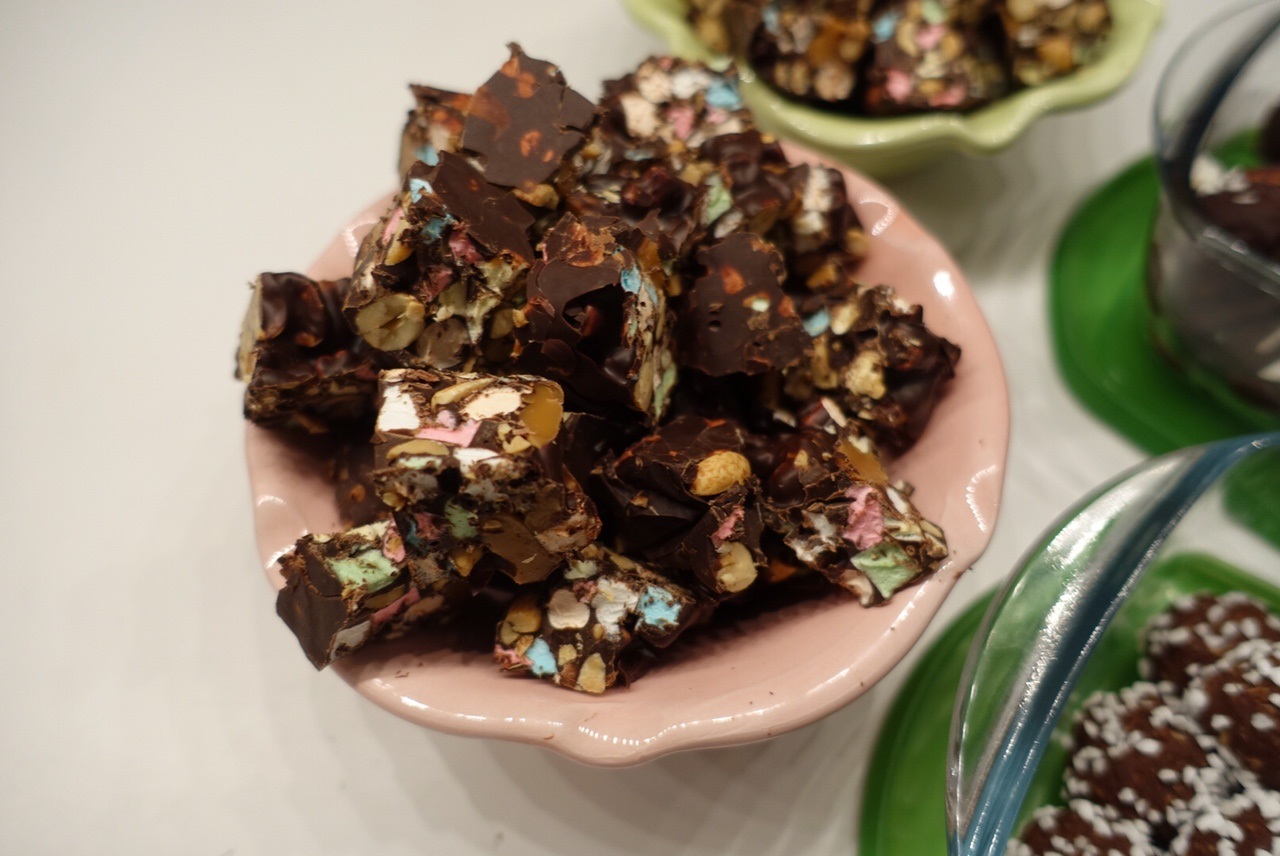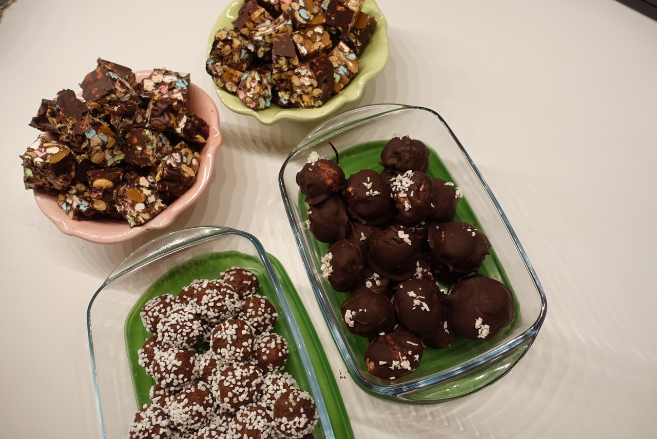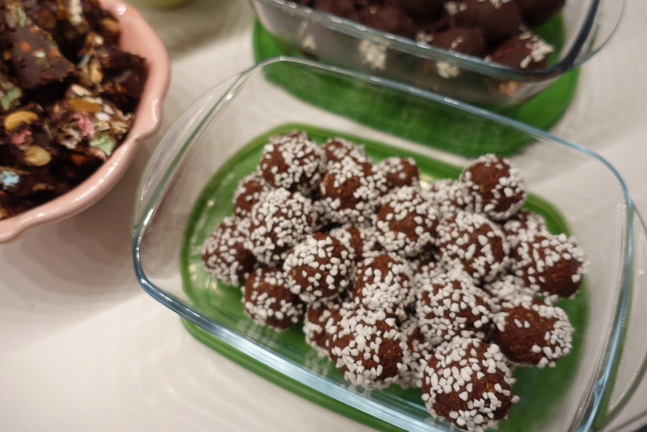 Recepten hittar ni i min blogg på Chokladbollar, Bounty och mitt recept på Rocky Road kommer. Bakade även kärleksmums….
