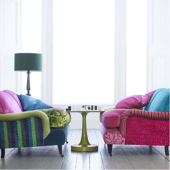 Färg är väldigt inbjudande…att klä soffor eller fåtöljer i några av sina älsklingstyger är som en blomsterbukett i sig självt.