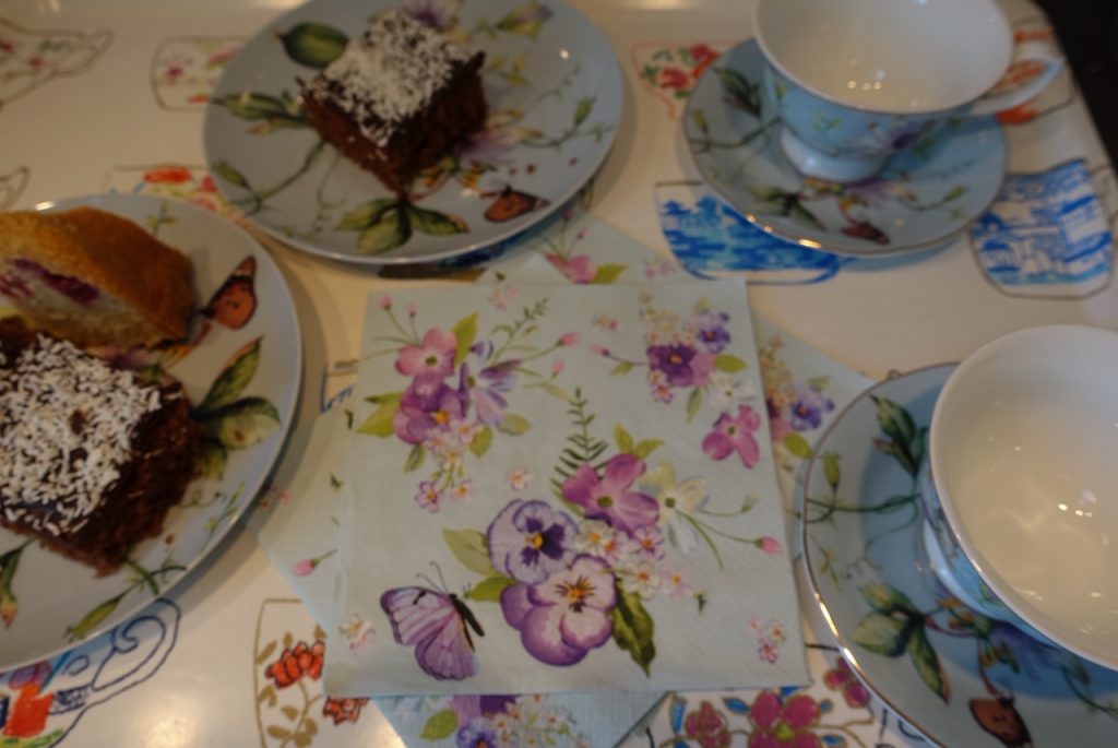 I dag dukade jag upp med mitt porslin jag köpte enkom för orangeriet. Dessutom har jag hittat de underbaraste servetter som passar perfekt till. Vad tycker ni? Blev det fint?