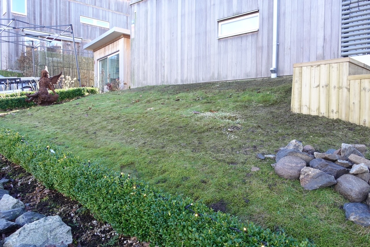 På långsidan av huset skall muren göras fin och det skall planteras häck längs hela muren. Jag skall fylla på med växter och vi skall rensa lite längst bort vid vår köksträdgård.