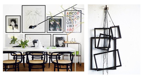 Man kan också bara sätta upp tomma ramar som blir särskilt effektfulla om man har en fin tapet och tar bort baksikdan av själva ramen.