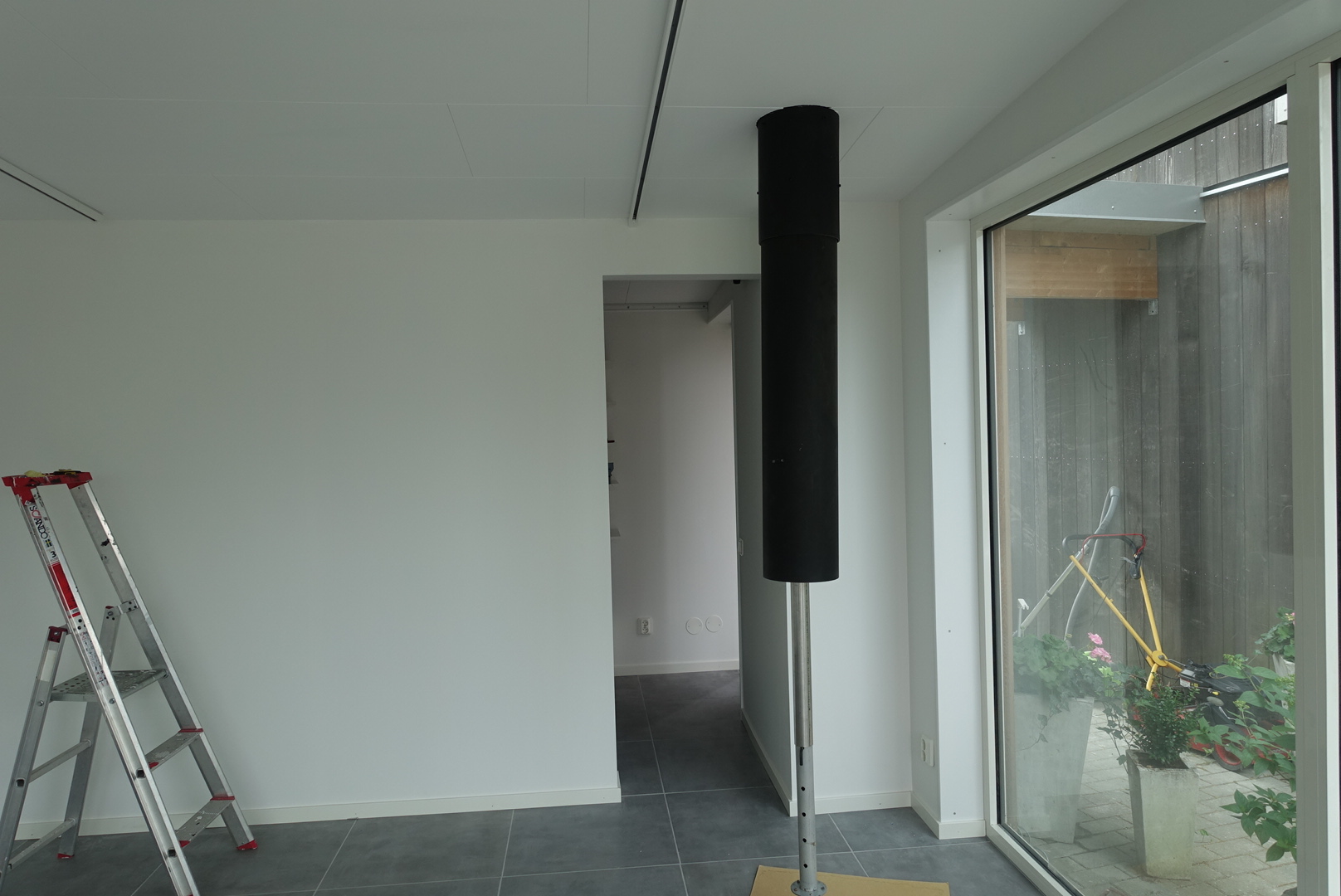 Vi har monterat belysningsskenor i taket i Showroom. Jag har rensat ogräs framför muren. Sedan har jag putsat de gigantiska fönstren till Showroom på in- och utsida. Sedan har Stefan hämtat spisen på lagret och jag har hjälpt till att montera den och det blir SÅ SNYGGT!
