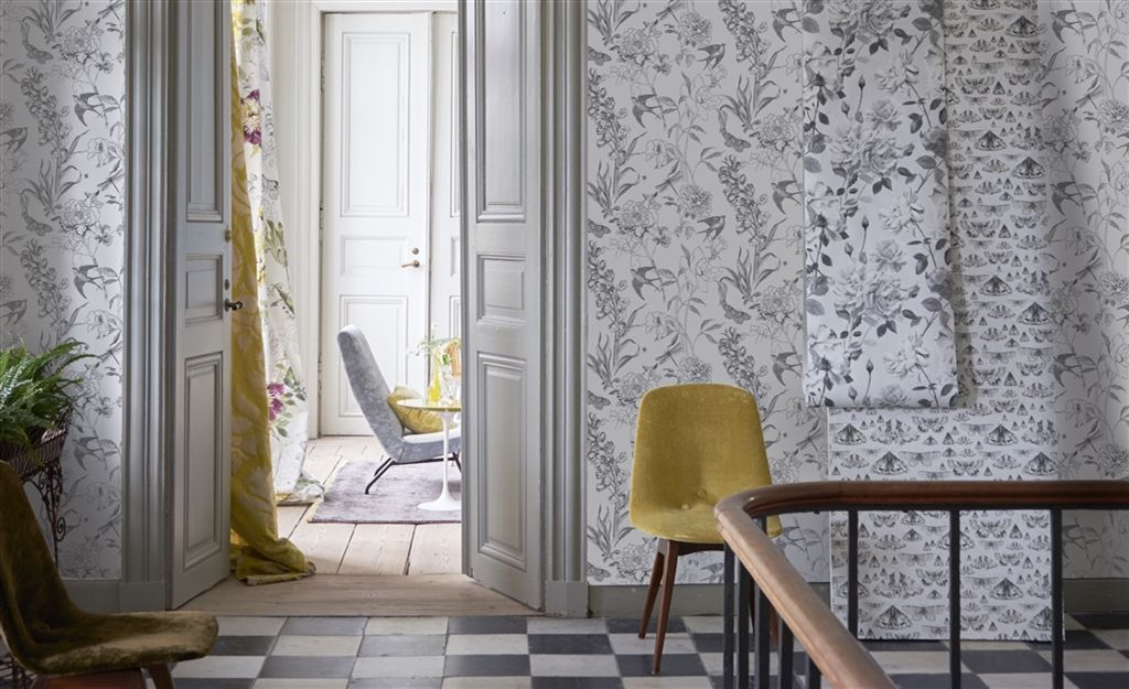 Vackert blyertsgråt tapeter med mönster inspirerade av Linné!