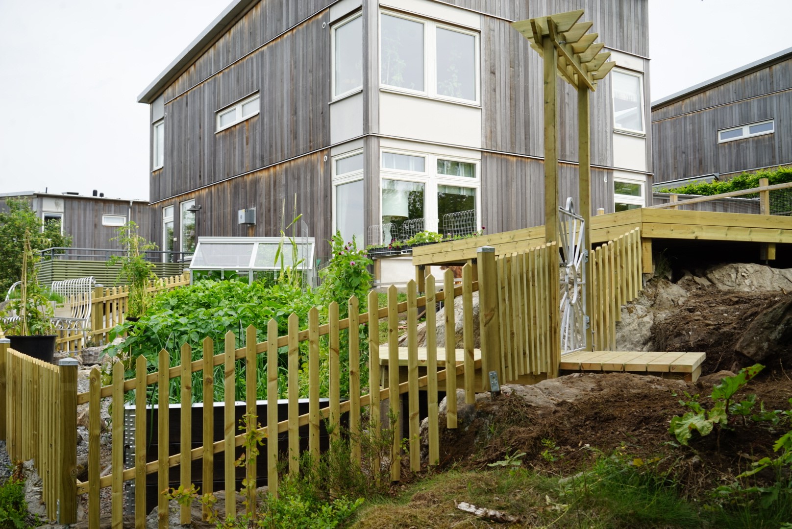 Här har även rosenportal och liten ”brygga” tagit form!