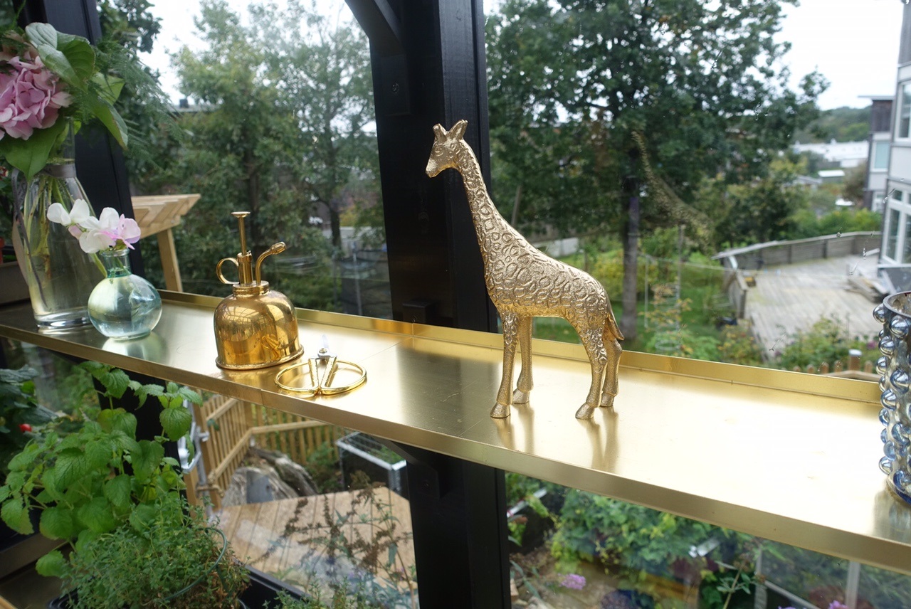 Alla detaljer på hyllorna är valda med omsorg och tanken är sedan att under tidig vår så kommer mina svarta odlingslådor ta plats på dessa hyllor i mässing, för att sedan ersättas med vackra detaljer när allt är utplanterat. Stefan har till och med tillverkat hyllorna utefter storleken på mina odlingslådor! Allting kommer bli så himla bra.