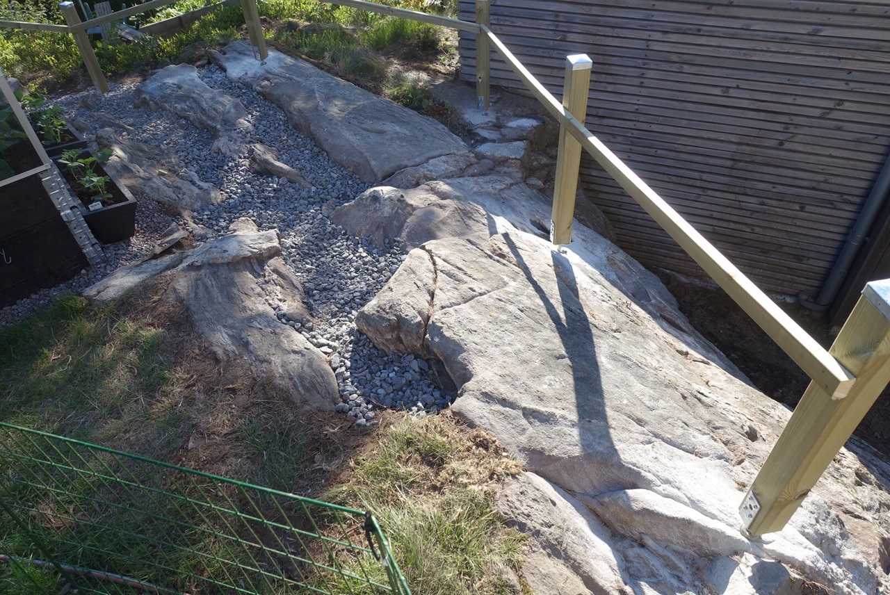 Stolparna borrades fast i berget. Det är väl den enda fördelen här. Allting står på berg så allt kommer sitta som ”berget” … hahahah. Äntligen kom jag på en fördel med bara berg!