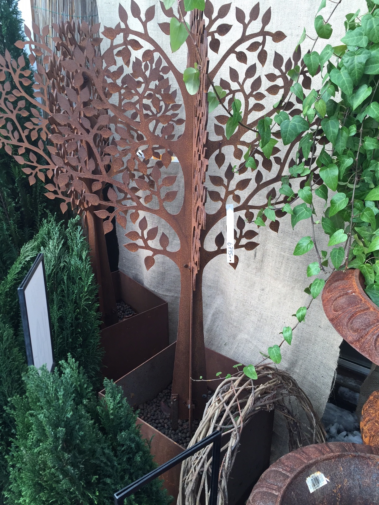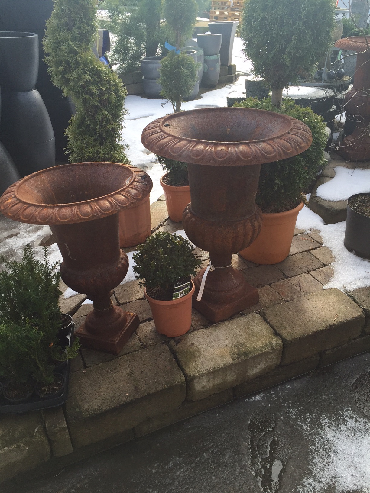 Även dessa rostiga urnor är helt underbara men inte direkt billiga! Älskar den superstora murgrönan som växer i den!