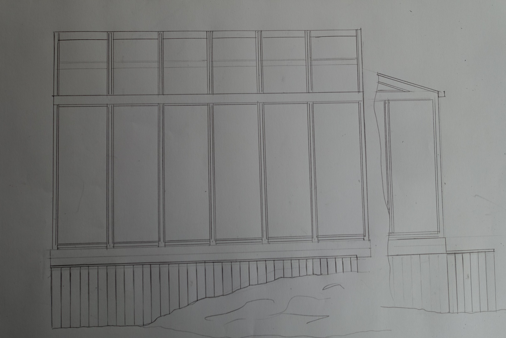 Så här ser resultatet ut. Det ni ser är baksidan på växthuset och på högersida har Stefan gjort ett snitt för att man skall se hur det ser ut från sidan av växthuset där han kommer att bygga ytterligare odlingslådor ut med berget! Vi tar vara på varje dyrbar kvadratmeter! 🙂