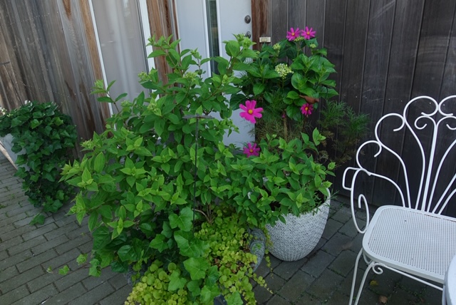 Rosenskäran har börjat blomma så smått bland Hortensian!