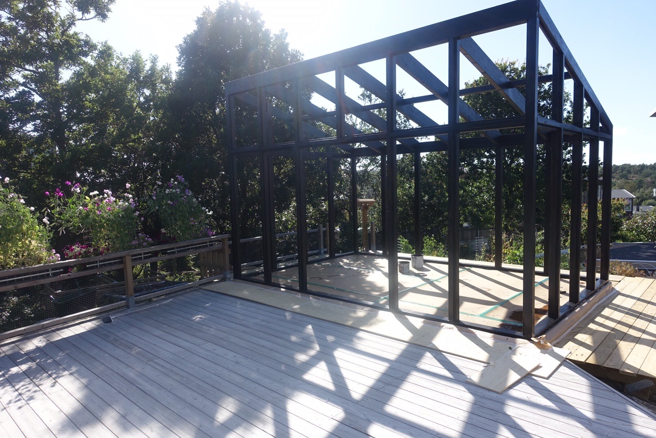Just nu är det bara massa smådetaljer som skall till. Vi vill bli färdiga med huset innan hösten sätter igång så klart och vi hoppas och tror att det skall vara klart i slutet av augusti! Det kommer bli så himla vackert när det är klart och det set så ståtligt ut där det står. Tänk att för 5 månader sedan fanns det bara otillgänglig mark och berg här och nu är det snart ett härligt rum att odla och mysa i. Jag längtar tills vi kan äta får första middag här ute!