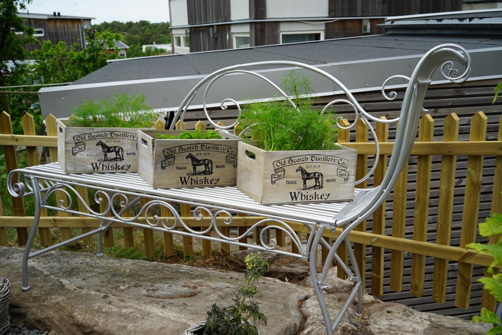 Till dagens utseende så har vi gjort massor! Nu planerar vi mer odlingslådor runt själva växthuset som kommer får fantastisk miljö. Vi har även gjort supercoola växtstöd till balkonglådorna! Vi kommer göra både på ena sidan och långsidan för öppningen till växthuset skall vara emot terrassen!