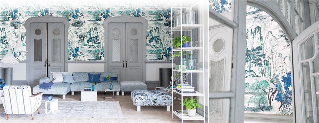 Underbara tyger och tapeter i blå toner…