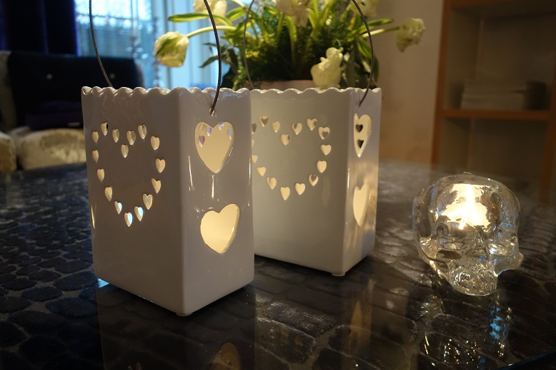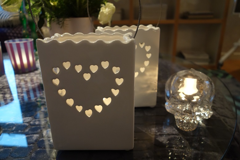 Jag köpte även lite ljuslyktor och hittade dessa fina ”påsar” i porslin. De kostade 39:90 styck.