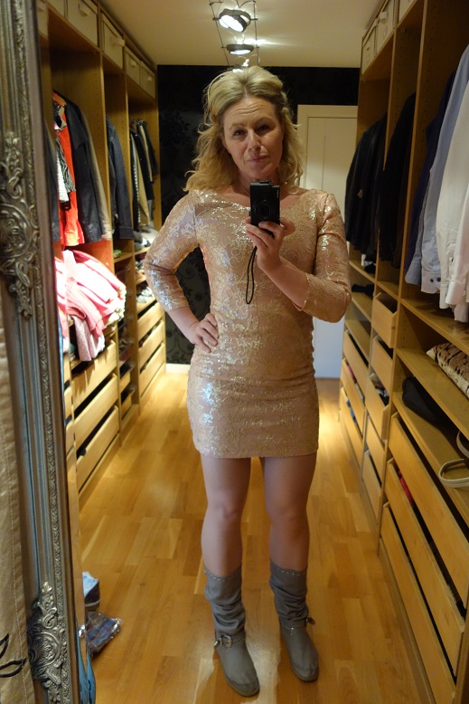 Man väljer självklart själv om man vill ha det tillhörande skärpet i midjan eller ej, för klänningen är figursydd.