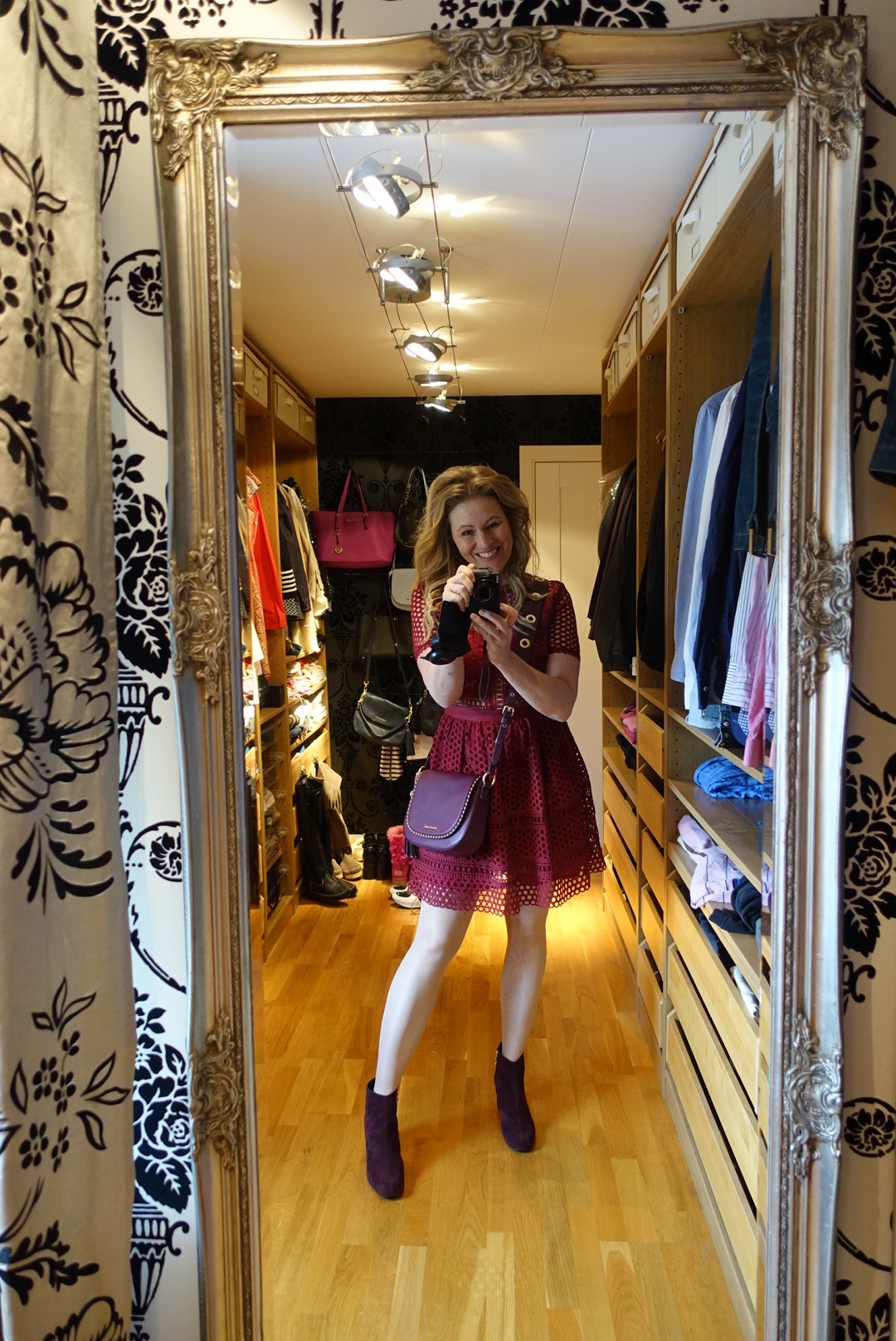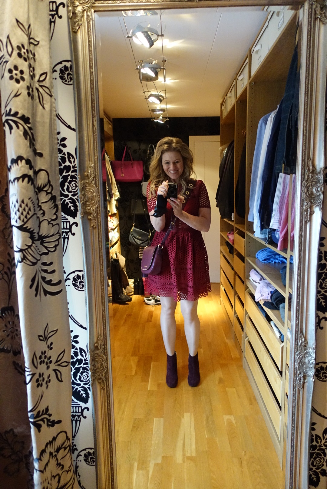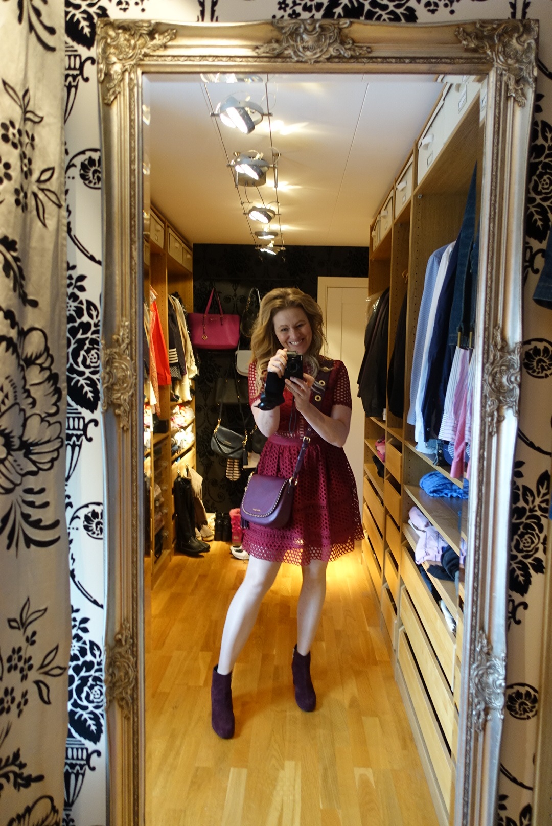 Så här blev det när jag provade med min vackra klänning från By Malina som jag hade räknat ut att de skulle bli jättefina tillsammans med. Bootsen och väskan är plum och klänningen vinröd så det blir en kontrast trots att färgerna ligger väldigt nära varandra. Underbart!