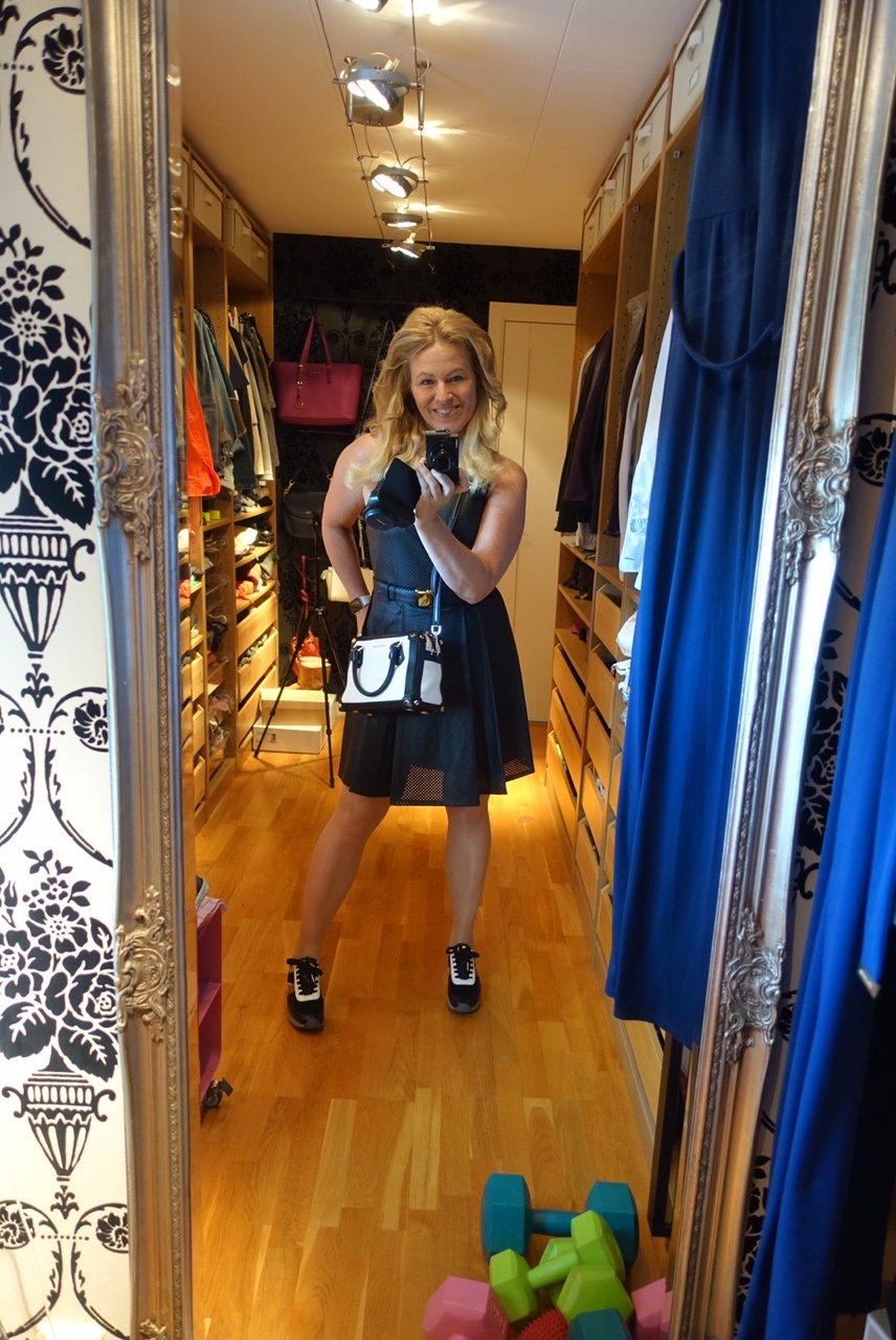 Jag köpte en klänning som har ett perforerat intryck. Det är små små hål tryckta över hela känningen, en är A-skuren och har en perfekt längd som slutar strax ovanför knät och ett bälte i midjan med guldspänne. Till köpte jag ett par sportiga skor i guld, svart och vitt. Dom kommer därmed bli väldigt användbara till mycket. Fördelen med att ha en lite sportigare outfit till en sådan klänning är att man även kan ha den vid festligare tillfällen utan att känna att man behöver ta på sig höga klackar om man skall stå och gå mycket.