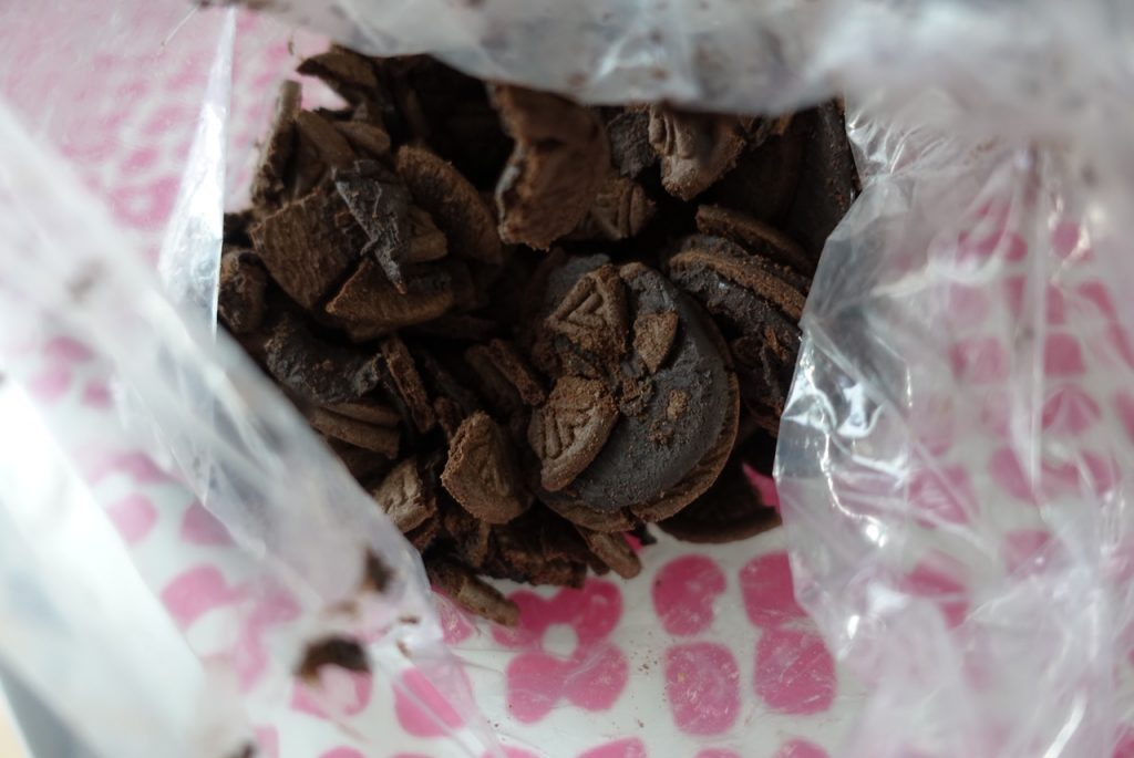 Lägg samtliga Ballerina Kladdkakor i en vanlig fryspåse/plastpåse och mosa dom med handen.