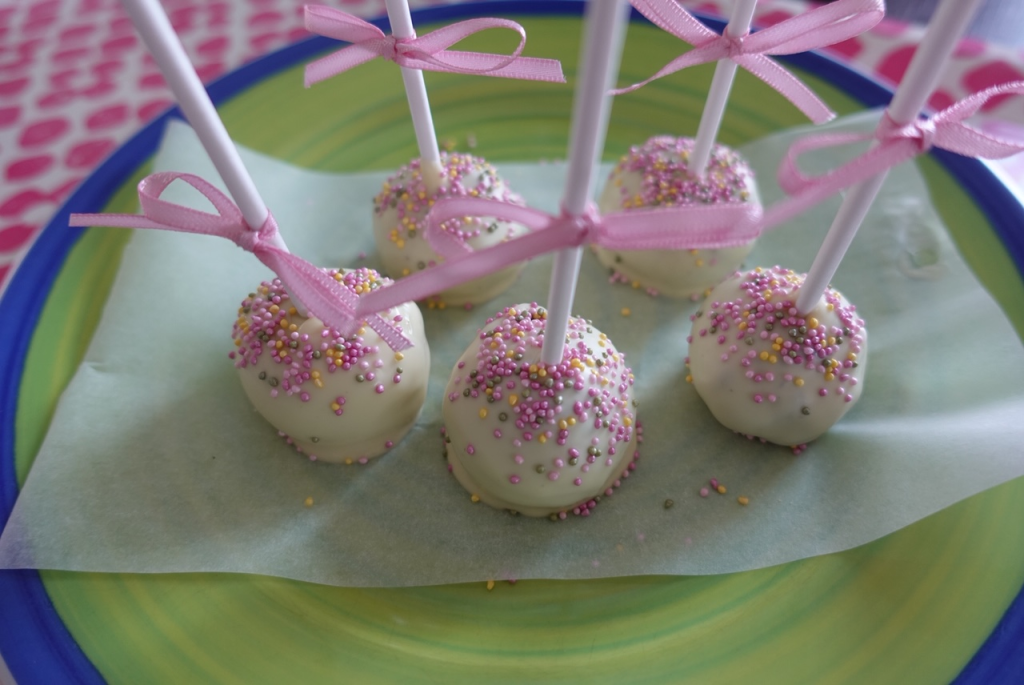 Cake pops är ett perfekt julgodis, och därför tänkte jag ge er mitt recept på dessa idag. Det gäller att planera allt man vill ha gjort innan jul eller till glöggpartyn. Dessutom så ser cake pops vackra ut på vilket bord som helst och fantastiska till godisbordet på jul! Man kan så klart göra varianter på cake pops med vit eller mörk choklad. I denna omgång har jag valt att göra med vit choklad och strössel med fina färgglada kulor på toppen innan chokladen smälter. Jag har även ett tunt sidenband som jag dekorerat varje cake pops med. Ser otroligt fint ut. Eller hur?