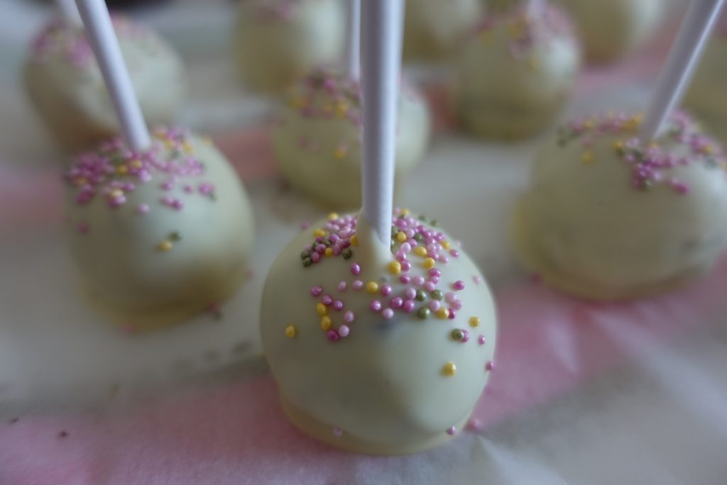 Sätt sedan cake pops i frysen i minst 4 timmar innan du rullar/doppar dom i vit choklad. Det är bra om dom är genomfrusna för då hinner dom inte smälta när det är dags för doppning i vit choklad.