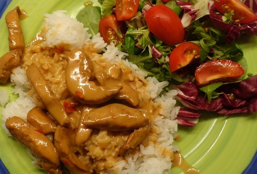 Nu när jag försöker tänka lite på vad jag äter så serverar jag med fördel blomkålsris till istället för ris, och det gör man så klart som man vill, och man kan servera vanligt ris till dom som vill ha ris, och kanske äta blomkålsris själv.