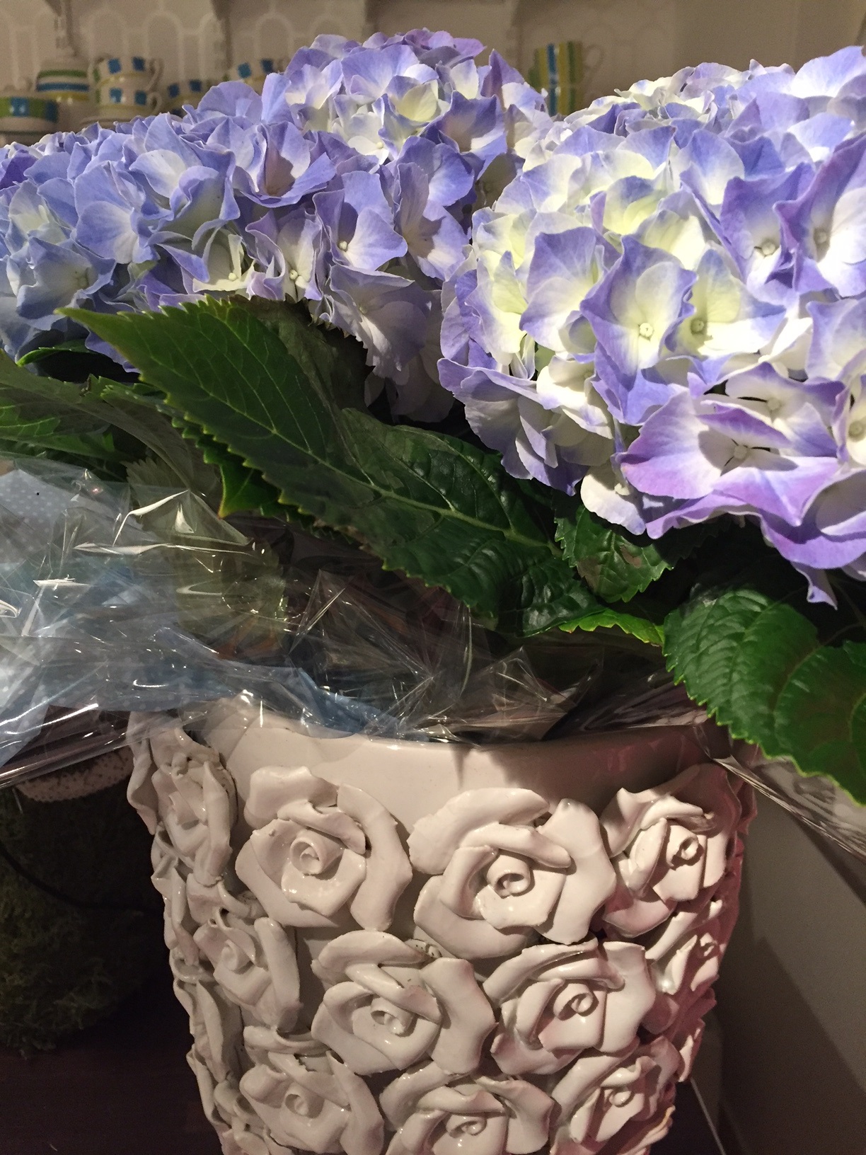 I dag består mitt fredagsmys av att först tittade jag in i en loppisbutik innan jag åkte hem och på vägen hem köpte jag mig en välförtjänt fredagsblomma. En Hortensia så klart eftersom det är min favoritblomma.