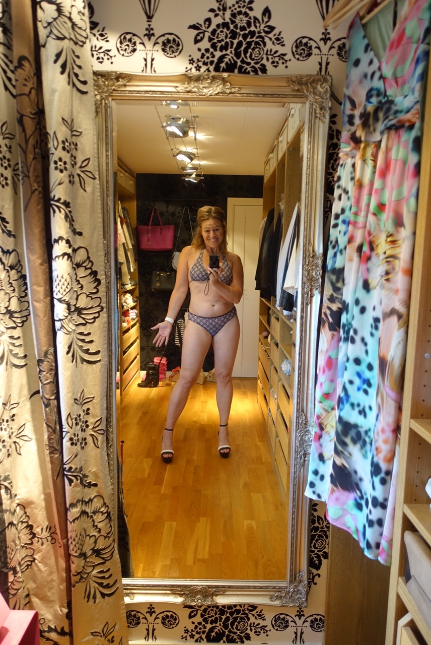 Mitt höftmått skall vara nere på 98 cm, mitt mått under bröst skall vara 75 cm, mitt lår skall vara 59 cm
