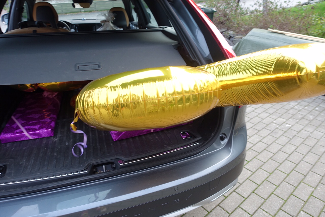 Hämtade ballonger på Buttricks dom har massor att välja mellan, och det är billigt! Kostade bara 334 kr för ballonger och dubbla vikter! Siffrorna är ca 80 cm höga! Dom blåser upp dom också så klart och det ingår i priset! 🙂