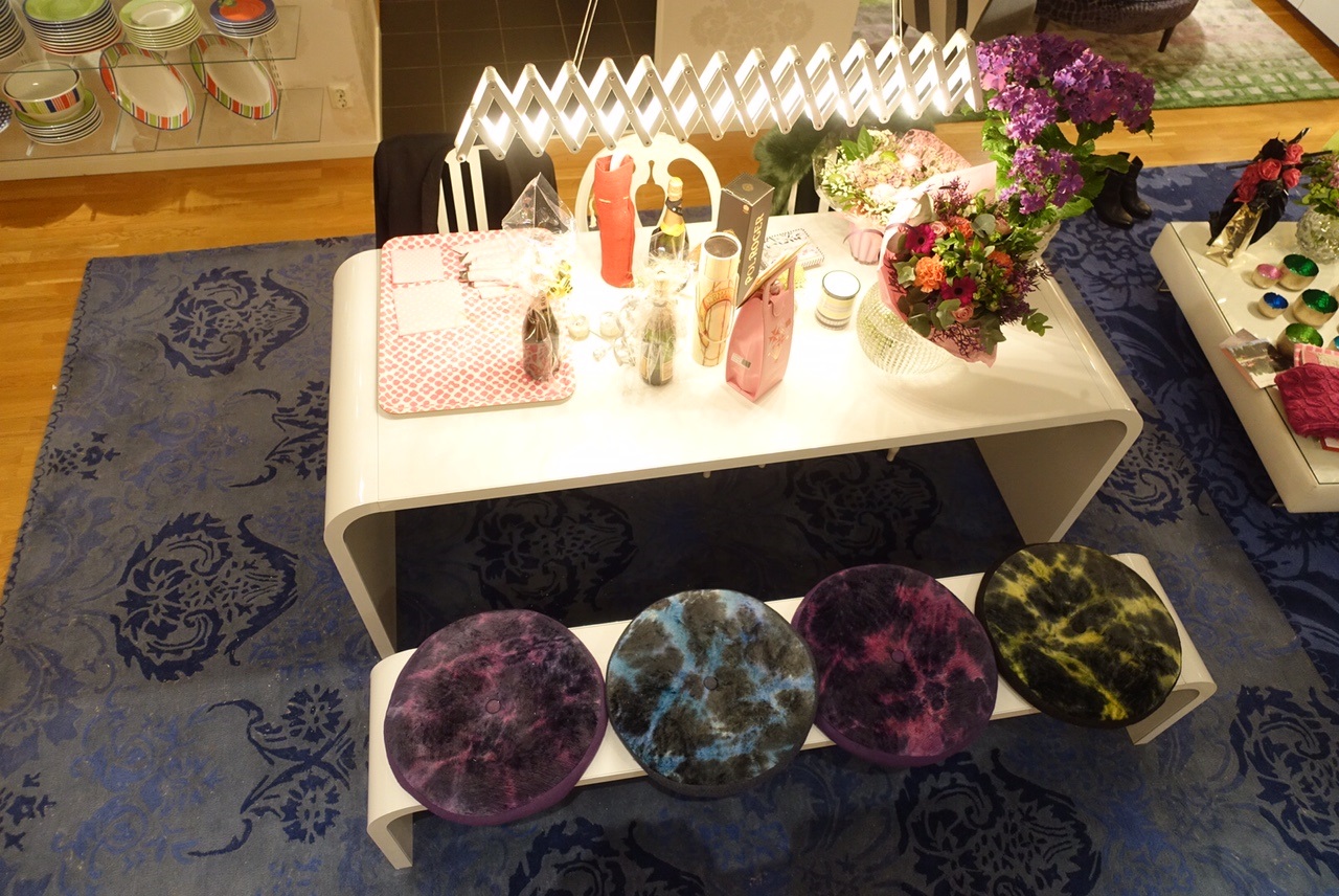 I vardagsummet har jag istället lekt med färg och form och lagt en enorm matta som är specialbeställd, och en mindre matta för att addera just färg och form i måtten 160x260cm. Då funerar det med en mindre matta på ett ställe om man har en stor i övriga rummet då ser det inte fånigt ut. Är ni med på hur jag menar! Ställ frågor annars!