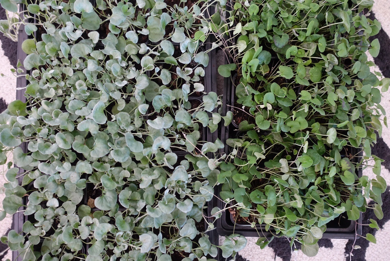 Sedan har vi silvernjurvindans nära släkting nämligen njurvindan som istället är mörkgrön och detta är också en favorit och det blev därför 30 stycken av dessa också! Så fint i samplanteringar med andra blmmor och i handeln brukar en planta kosta 59 kronor. Nu har jag egna och förra året blev de så vackra och minst lika fina som dom i handeln.