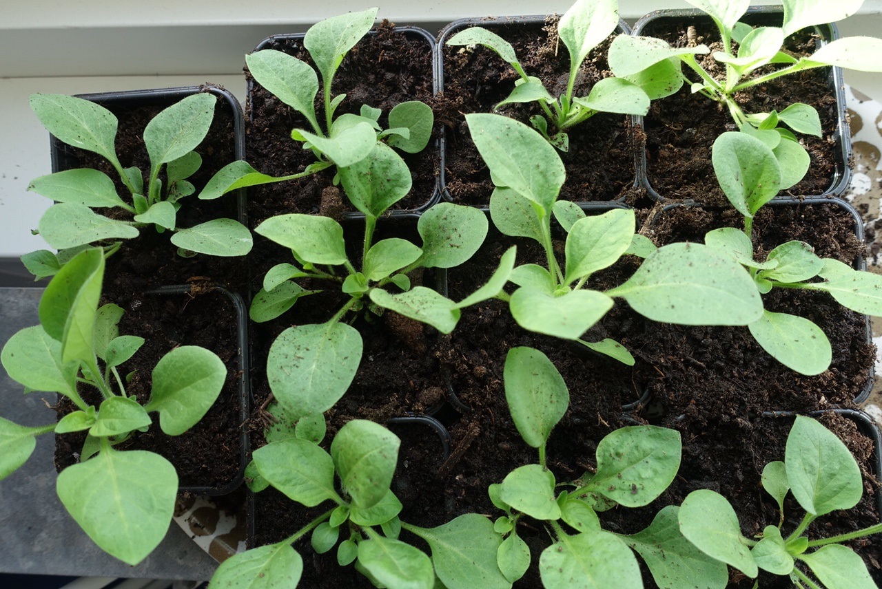 Seadan odlar jag även hängpetunior i olika färger. Det brukar jag ha i några av mina krukor och nu var det mest på skoj jag satte dem men de växer väldigt bra och det är samma sak där. Hängpetunior brukar också kosta en slant så det är klart att det är en rolig känsla att odla dom själv! De är rosa och lila! Har ett stort fat till!