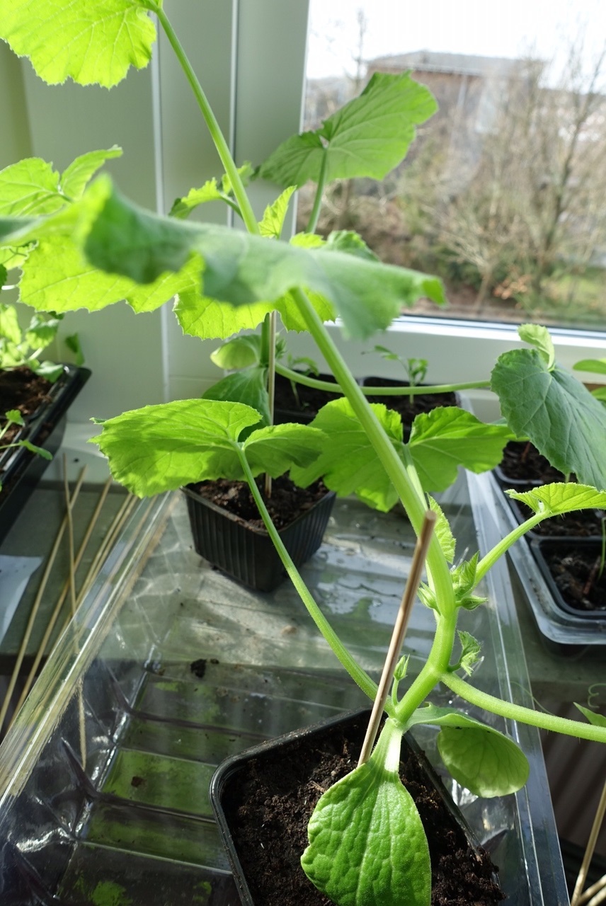 Detta är mina squashplantor. Dom är fantastiska och växer verkligen så det knakar och blir kraftiga och fina! Jag har bara två för jag behöver inte fler, det blir alldels för mycket att ta hand om annars! 🙂