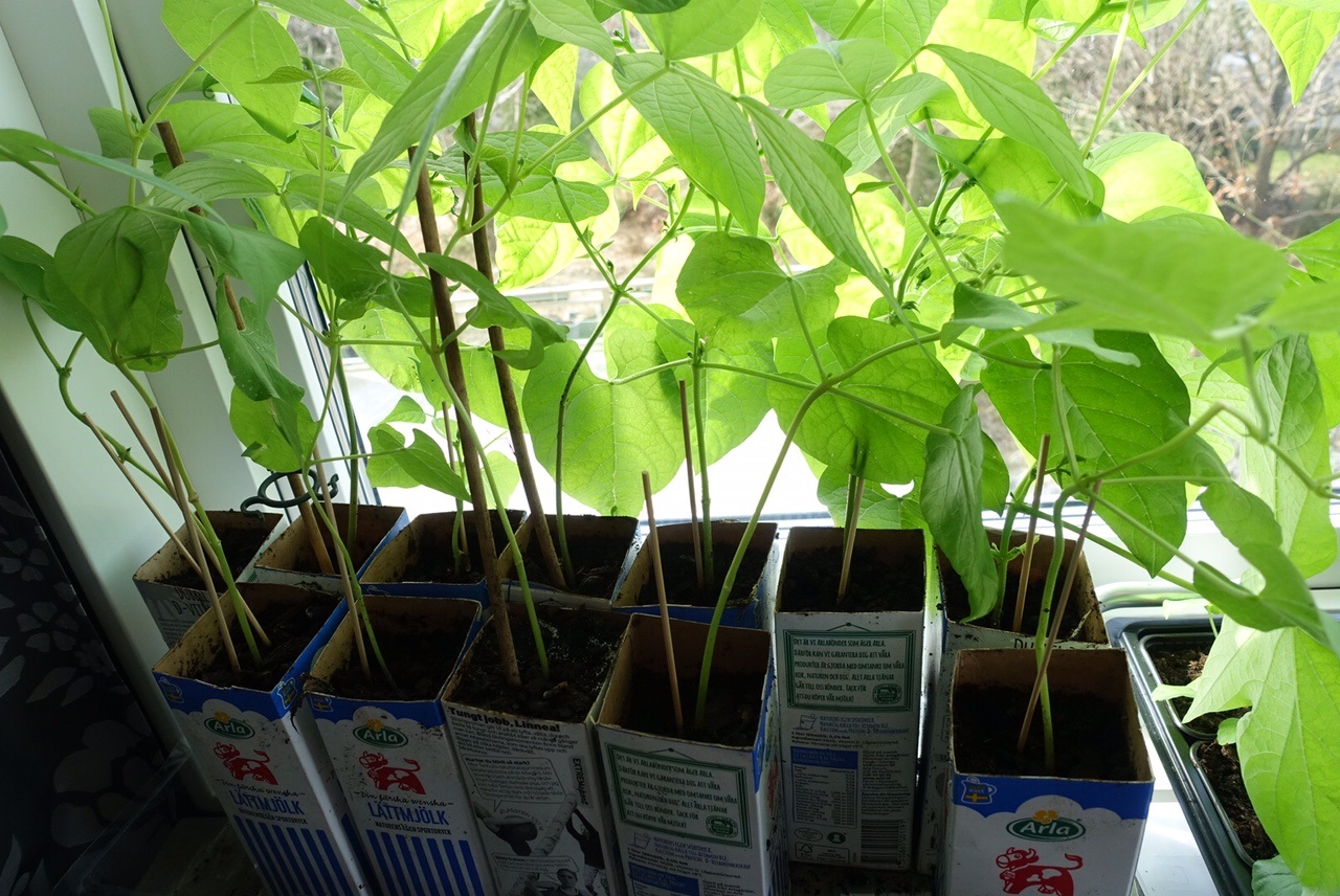 Sedan har vi tomatplantor som jag just planterat om. Jag har fler som snart skall planteras om och jag har satt både bifftomater, vanliga tomater och coctailtomater i två färger, gula och röda! Tanken är att jag dels alltid gör av men massor av coctailtomater i salladen, men sedan är min tanke att göra egen tomatsås, egen pizza sås etc. 🙂