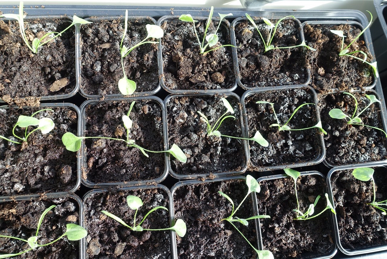 Dom ser kanske inte mycket ut för världen men dom har en lång groningstid…och de första bladen som kommer upp är de långsmala och sedan börjar den utveckla sina silverfärgade och njurformade blad!